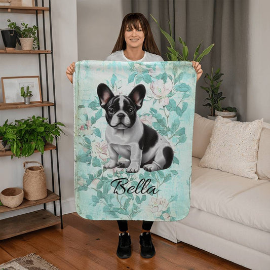 Custom Pet Blanket with Pet Photo + Pet Name Pink Pressed Flowers Blanket Custom Breed Sherpa Dog Mom Throw Customized Pet Gift Cozy Throw