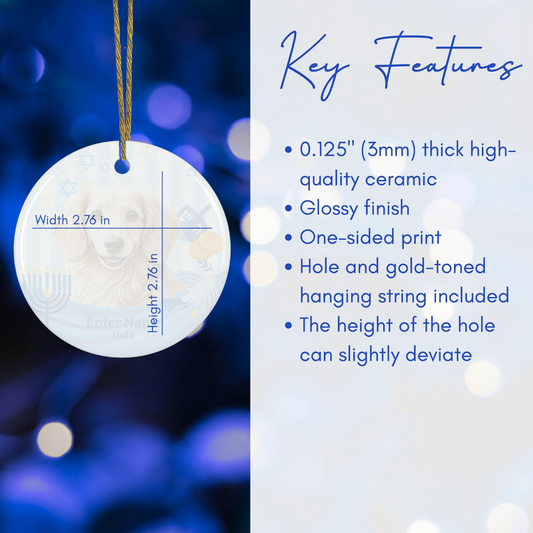 Ceramic Dachshund Hanukkah Ornament for doxie lovers, dog lovers, custom pet ornament, personalized ornament, pet lover, gift for pet lover.
