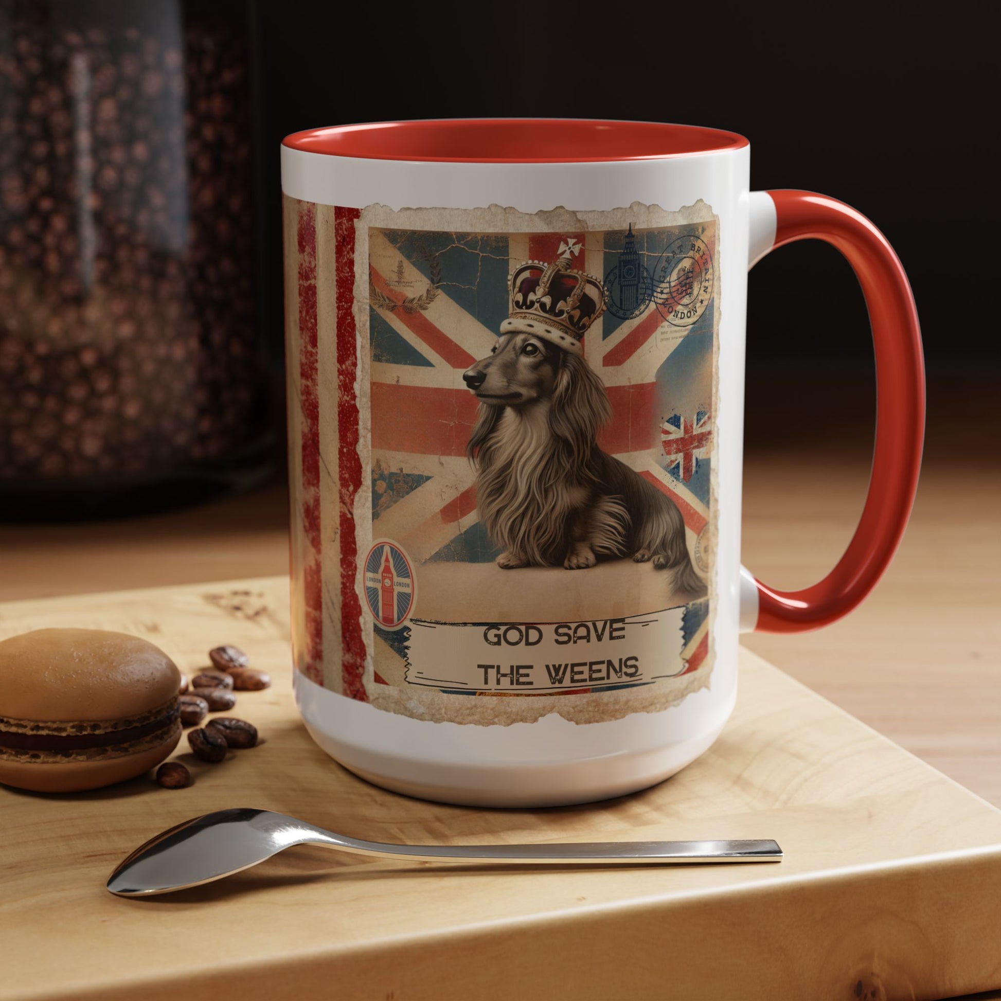 dachshund mug, royal dog mug, british dachshund gift, doxie mom mug, weenie dog tea mug, god save the weens, dog lover coffee mug, funny dog gifts, custom doxie mug, vintage union jack mug, british dog lover gift, dachshund queen mug, dog mom cup, weiner dog gift, God Save the Queen, God Save the King, British Royal Family, British Royals, British Gifts